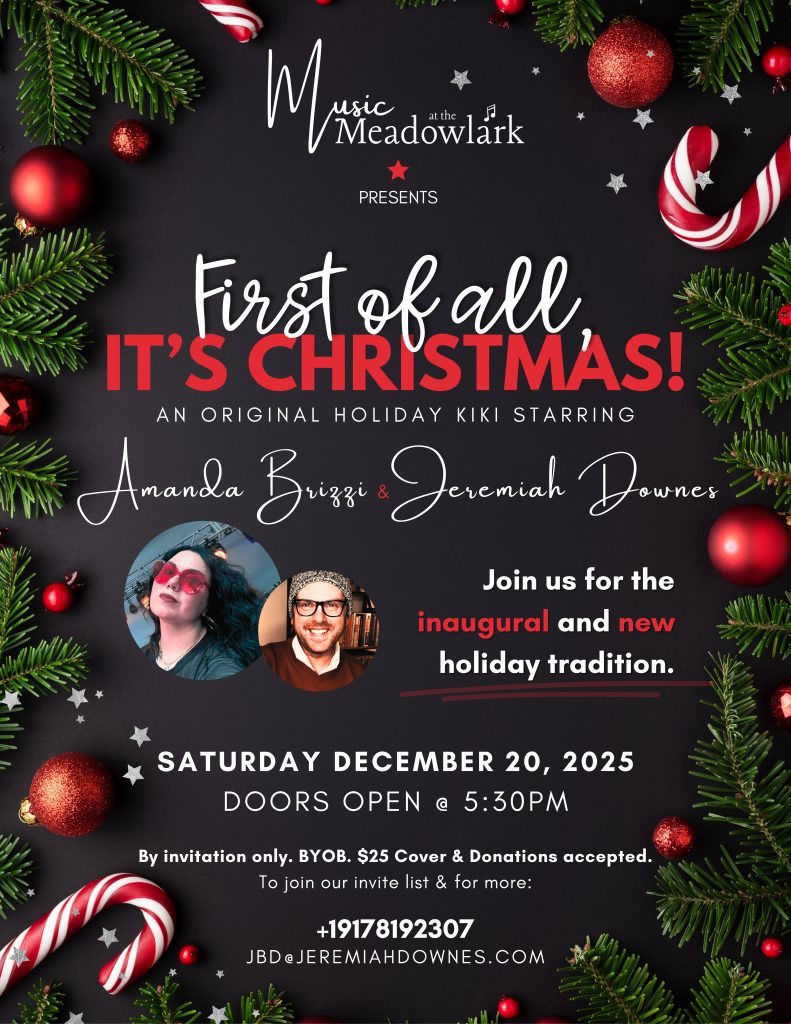 We’re getting the band back together kids! Join me and, vocal powerhouse/queen of all things, Amanda Brizzi in a warm up to your holiday season. Music at the Meadowlark’s first live event, and a new inaugural holiday tradition. We will share lots of laughs and beloved holiday songs, in an intimate evening for friends new and old.